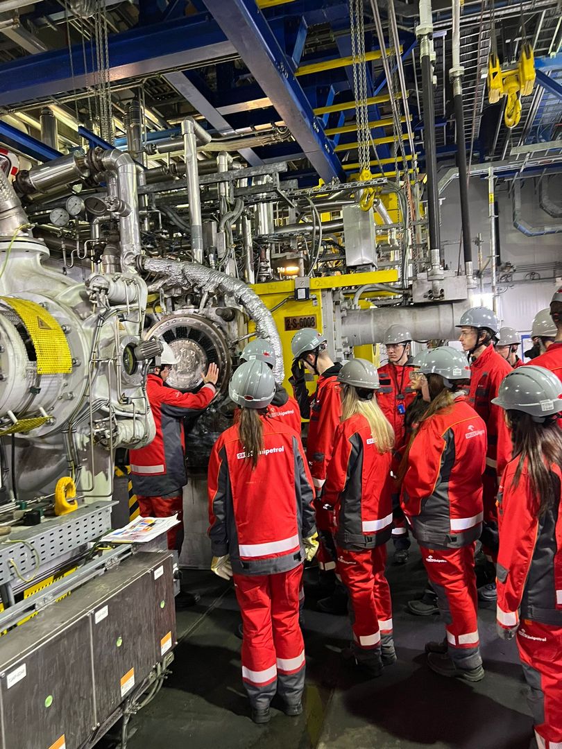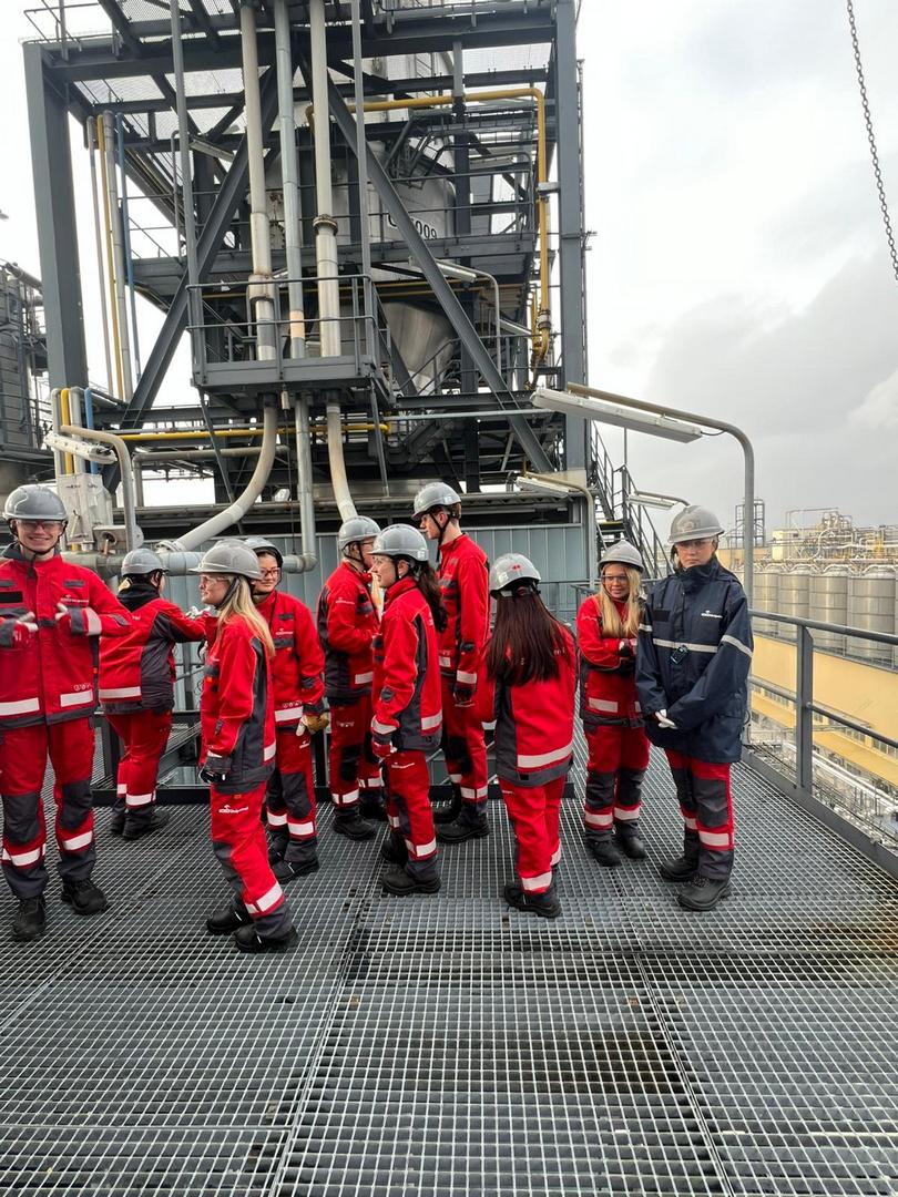 Během prohlídky prošli účastníci celým výrobním cyklem polyethylenu – od prvotního zpracování surovin, přes následné chemické procesy, až po finální produkci granulátu, který je dále využíván v průmyslu pro výrobu obalů, nádob, fólií a dalších běžných výrobků.
