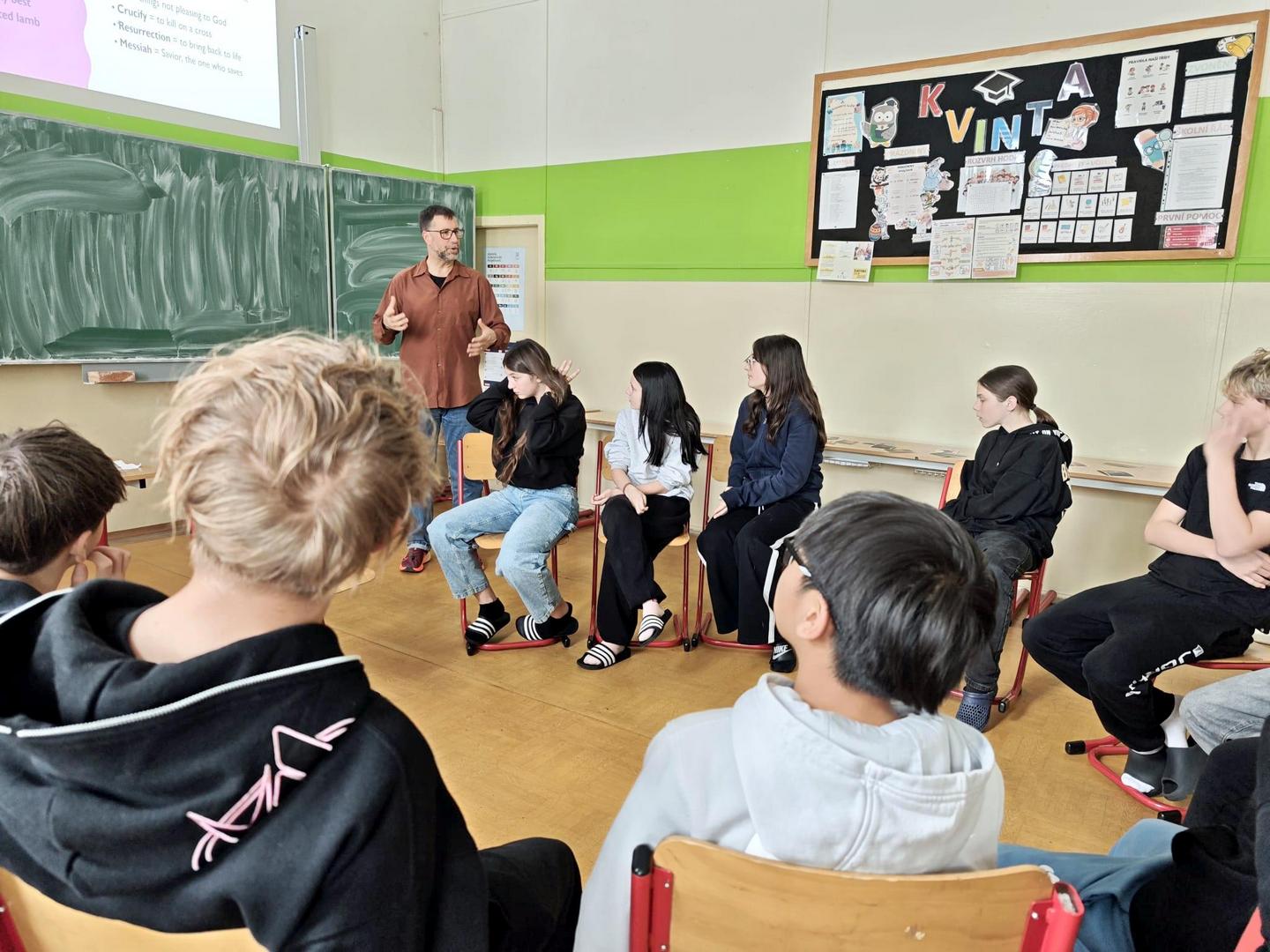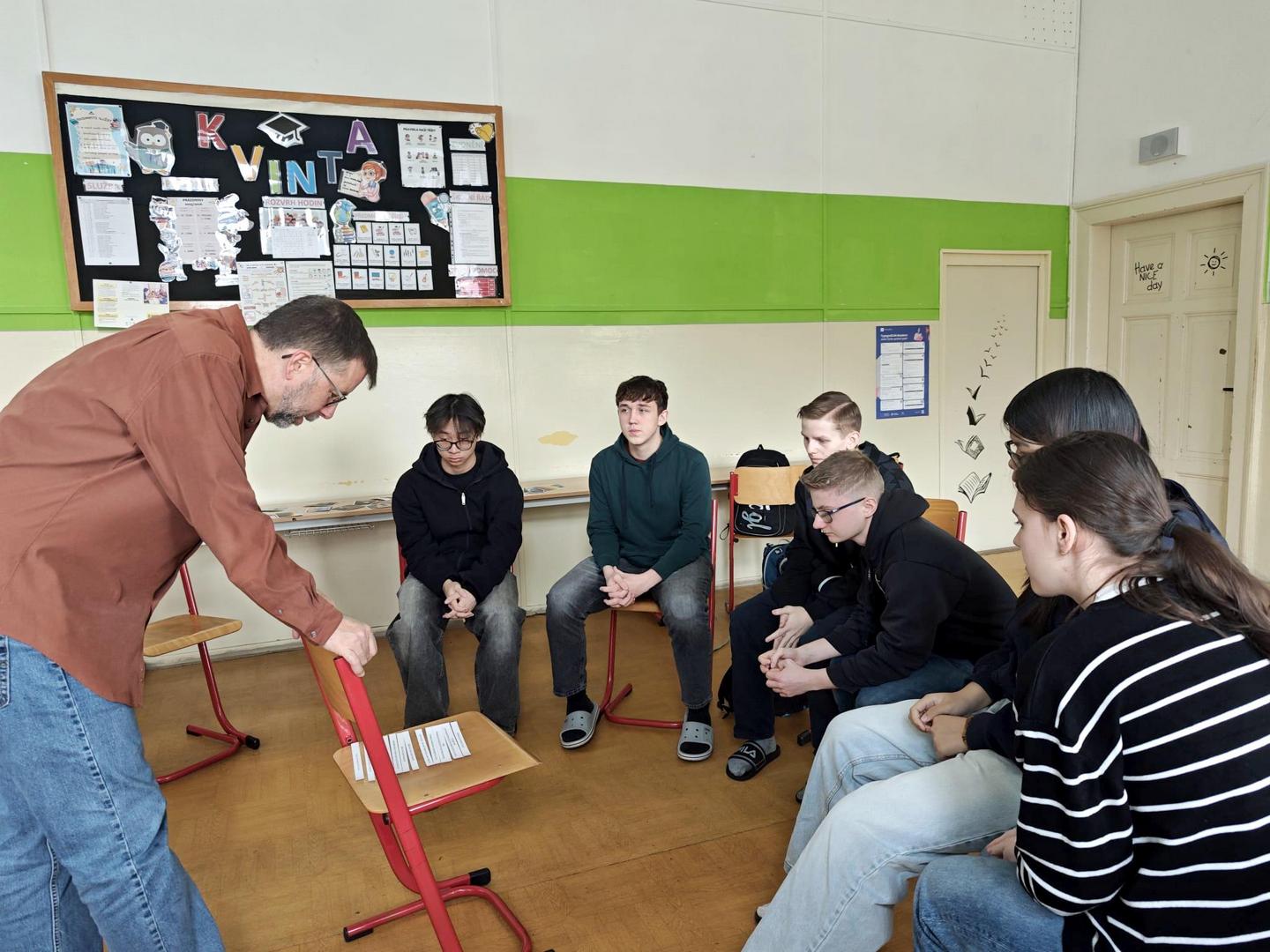 Ve čtvrtek 26. března 2026 měly tentokrát i nejmladší ročníky možnost pohovořit si s rodilými mluvčími angličtiny. Geoff a Ben si tentokrát přichystali konverzační témata, hry a aktivity spojené s Velikonocemi. Studenti spontánně reagovali, snažili se odpovídat v rámci svých znalostí a aktivně se zapojovali do všech činností. Všichni účastníci se příjemně naladili na nadcházející velikonoční týden.